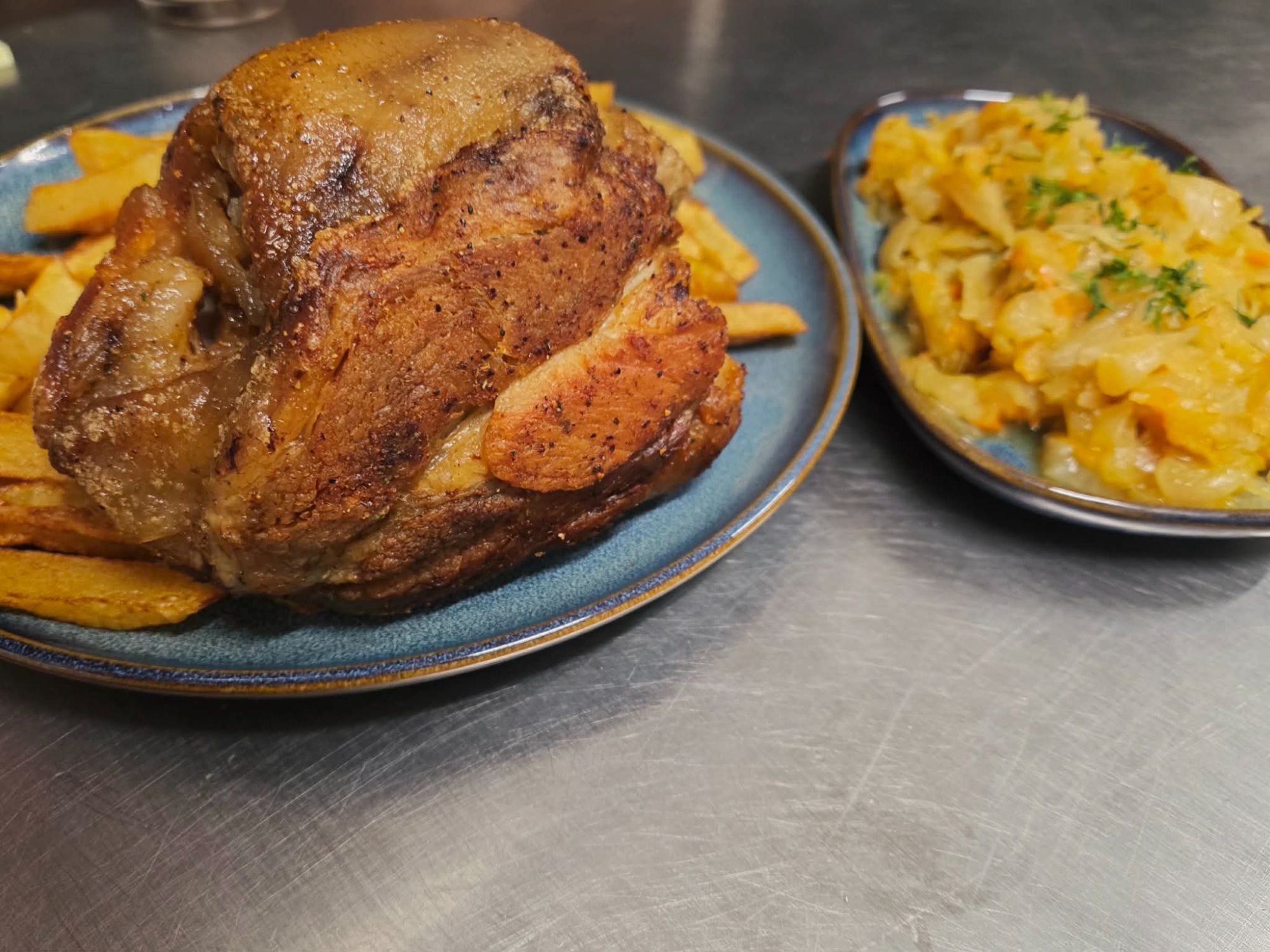 mięso wieprzowe, papryka, cebula, pieczarki, pomidory w sosie węgierskim, podawany do pieczywa -