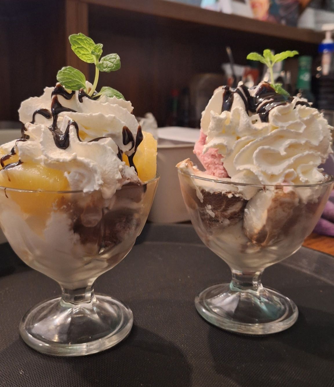 Szarlotka na ciepło z lodami, bitą śmietaną i sosem waniliowym